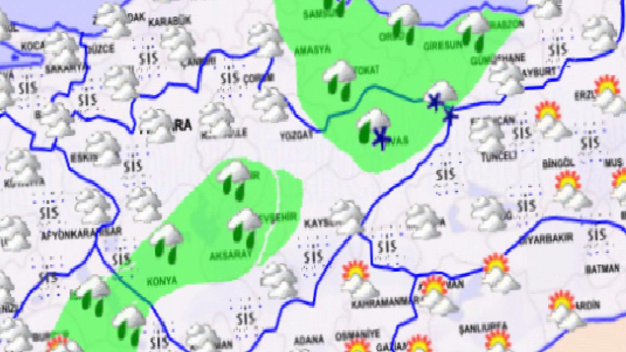 Yağışların genel olarak yağmur ve sağanak şeklinde görüleceği, Doğu Karadeniz’in iç kesimleri ile Sivas ve Ardahan çevrelerinde ise karla karışık yağmur ve yer yer kar yağışı olacağı tahmin edilirken Meteoroloji; Marmara ve Ege bölgeleri ile iç ve doğu kesimlerde yer yer sis ve pus hadisesinin görülebileceği uyarısında bulundu.