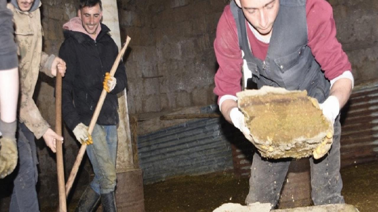 Bitlis merkeze bağlı Küllüce köyünde her yıl bu dönemlerde bir araya gelen köylüler, ağıllardaki hayvan dışkılarını imece usulüyle kesip el arabalarıyla taşıyarak ağıl dışında istifliyor.