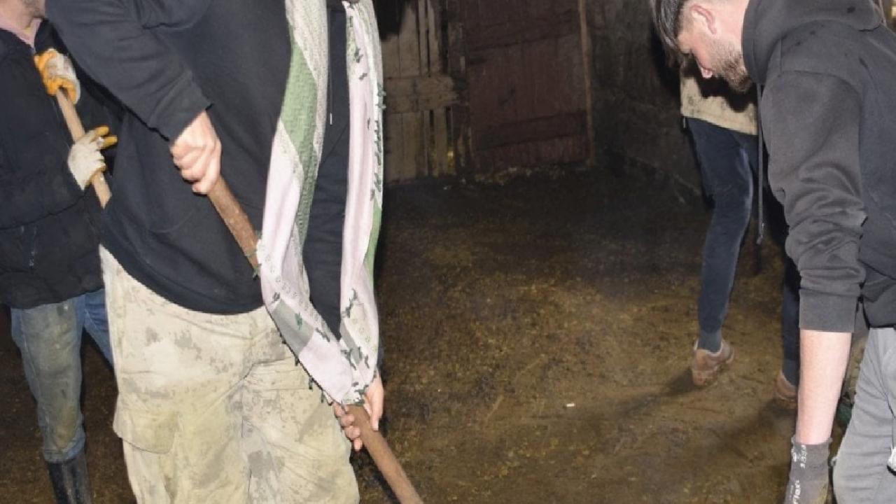 Çalışmayı daha keyifli hale getirmek için zaman zaman Kürtçe türküler söyleyen köylüler, kısa sürede işi tamamlayarak bir sonraki ağıla geçiyor.