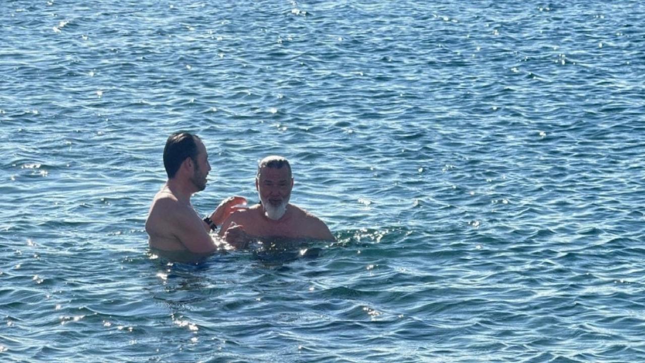 Soğuk havaya rağmen denize giren vatandaşlar, yeni yılın ilk gününde denizin keyfini çıkardı.
