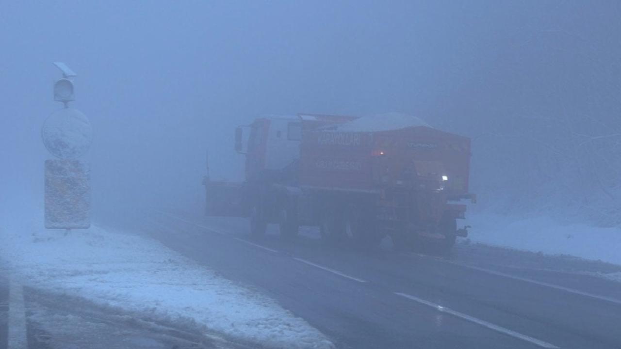 Sabah saatlerinde aralıklarla hafif kar yağışı etkili olurken, sis nedeniyle de görüş mesafesi yaklaşık 30 metreye kadar düştü.