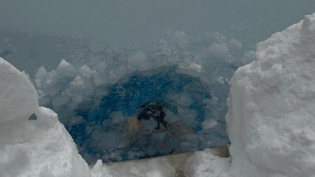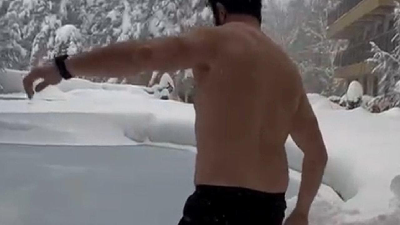 Tatil için kente gelen ve Bolu Dağı bölgesinde bir otelde konaklayan Eren Biri, soğuk havaya aldırış etmeden havuza girdi.