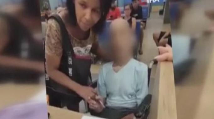 Erika de Souza Vieira Nunes adlı bir kadın, ölen amcasını tekerlekli sandalye ile bankaya götürerek adına almaya çalıştı.