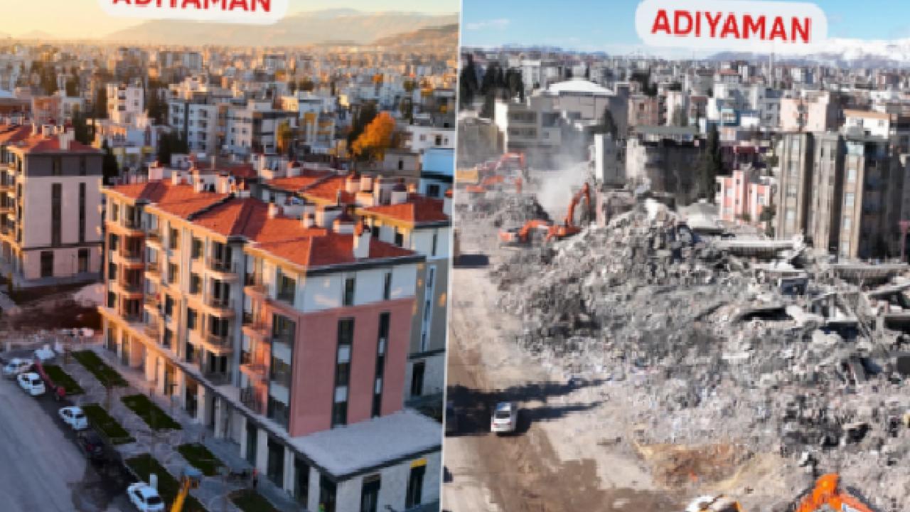 Kurum, Adıyaman'daki çalışmalara ilişkin de şunları anlattı: "Sahabeler şehri Adıyaman'da saat 04.17'de meydandaki saat durmuştu. Biz burada sadece o meydandaki saati değiştirmedik Atatürk Caddesi'nden başlayıp İndere'deki konutlarımıza, oradaki Ulu Camisi restorasyonuna kadar tüm Adıyaman'ı baştan aşağı inşa ettik. Burası bomboştu, depremin 7. ve 8. günü burada tespitlerimizi yaptık. Dedik ki 'Burada tüm şehre hakim yeni bir uydu kent kuralım' ve dağları deldiğimiz, kırıcılarla günlerce aylarca çalıştığımız Adıyaman İndere projemizde sadece bu alanda 16 bin konutu, okulu, camisi, parkı bitirildi ve vatandaşlarımıza teslim edildi. Adıyaman'ımız da 44 bin yeni yuvasıyla küllerinden yeniden doğdu ve artık Türkiye Yüzyılı'na hazır."