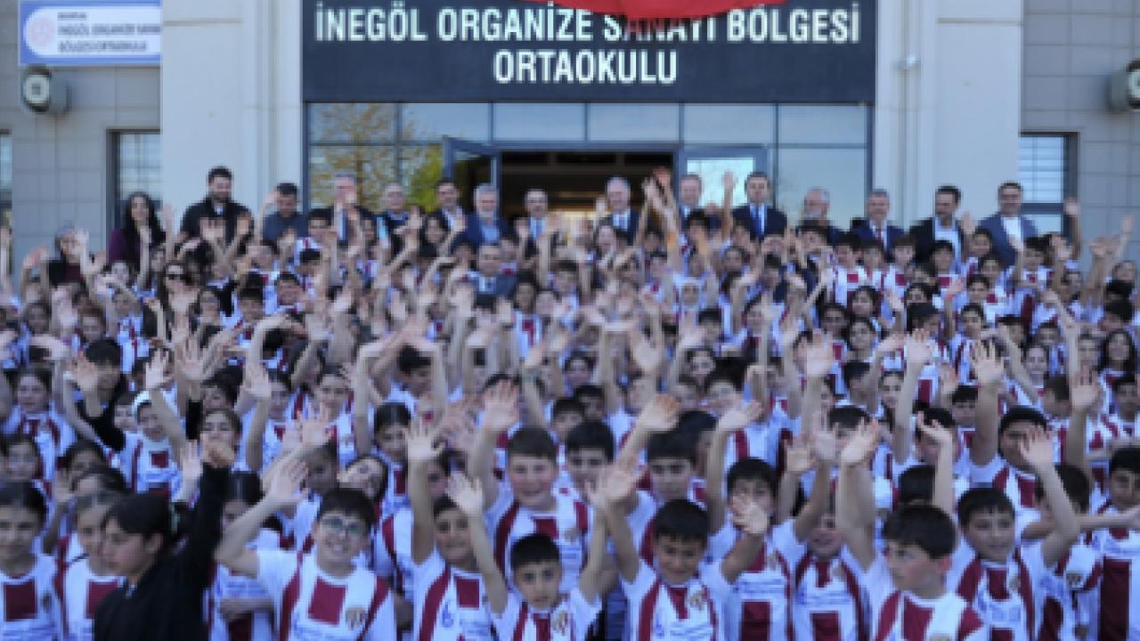Sponsor desteği ile ilerleyen proje kapsamında, İnegöl Organize Sanayi Bölgesi sponsorluğunda OSB Ortaokulu öğrencilerine forma dağıtımları yapıldı. Belediye Başkanı Alper Taban, İnegöl Organize Sanayi Bölgesi Başkanı Zeki Şahin, İnegölspor Başkanı Kani Ademoğlu ile yöneticilerin katıldığı forma dağıtım töreninde, öğrencilerin bordo beyaz formalarla yaşadığı mutluluk dikkat çekti.