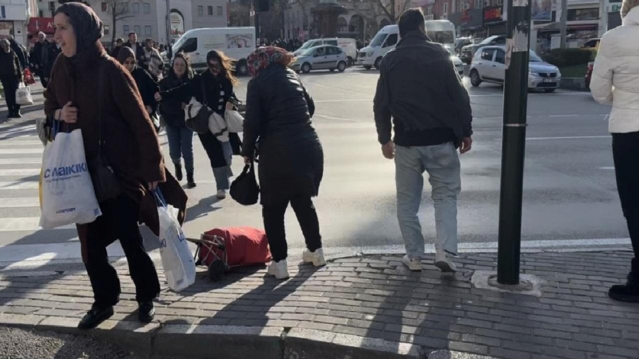Pazar alışverişinden dönen bir vatandaşın elindeki pazar arabası rüzgârın etkisiyle devrilirken, içindeki ekmeklerin savrulduğu anlar kameralara yansıdı.