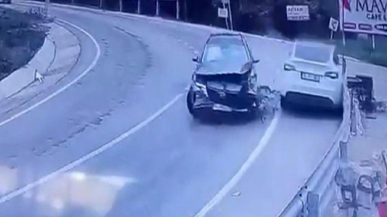 Zirveden inen otomobillerin hızlarını ayarlamaya çalışsalar da yerlerin kaygan olması sebebiyle duramadığı görüldü.