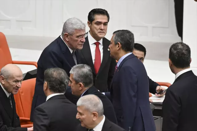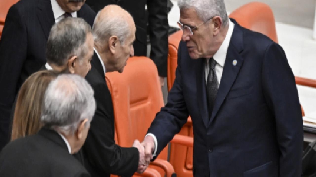 İYİ Parti Genel Başkanı Dervişoğlu ile CHP Genel Başkanı Özel, görüşmeler öncesinde MHP Genel Başkanı Devlet Bahçeli'nin yanına giderek tokalaştı. AK Parti Genel Başkanvekili Efkan Ala da Bahçeli, Dervişoğlu ve Bakırhan ile selamlaştı.