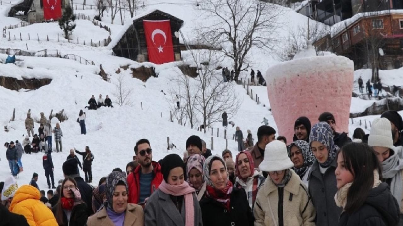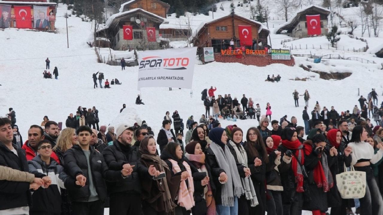 Kar üzerinde tulum ve kemençe eşliğinde kurulan dev horon halkalarının yanı sıra halat çekme, ok atma, çocuklar için animasyon etkinlikleri düzenlenirken, bazı vatandaşlar da poşetlerle kaymanın keyfini çıkardı.