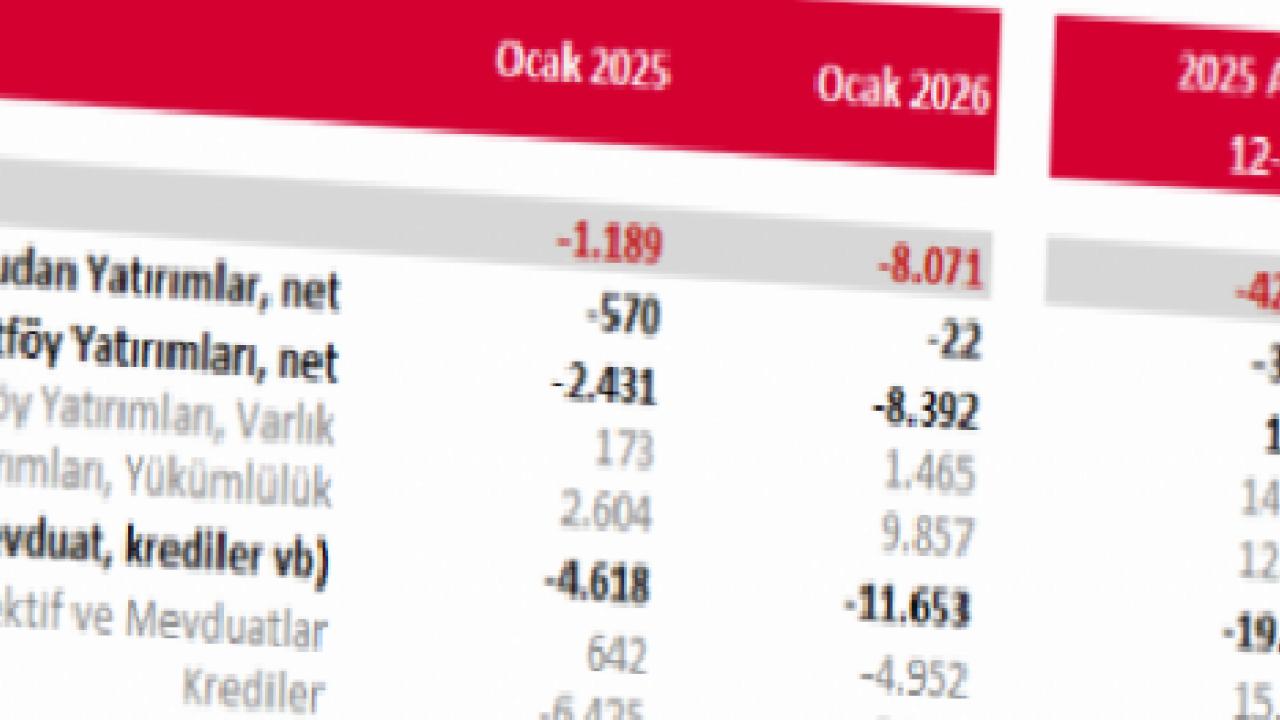 2026 yılı Ocak ayında yıllıklandırılmış cari açığın finansmanına net doğrudan yatırımlar 2,7 milyar dolar, net portföy yatırımları 4,2 milyar dolar, krediler 36,1 milyar dolar ve ticari krediler 0,3 milyar dolar katkı sağladı. Buna karşılık net efektif ve mevduatlar 10 milyar dolar negatif etki oluşturdu. Merkez Bankası döviz cinsinden net rezervlerinde ise 16,5 milyar dolarlık azalış gerçekleşti.