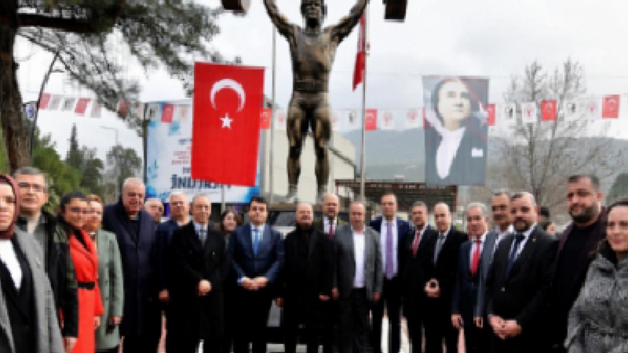 İZMİR () - Bornova Belediyesi tarafından yenilenen Pınar Caddesi’nde, Dünya ve Olimpiyat Şampiyonu “Cep Herkülü” Naim Süleymanoğlu’nun doğum gününde heykelinin açılışı yoğun katılımla gerçekleştirildi. Törende, Süleymanoğlu’nun yalnızca sporcu kimliğiyle değil, Bulgaristan Türklerinin sesi ve simgesi olarak taşıdığı tarihsel rol vurgulandı. Başkan Ömer Eşki, heykelin Naim Süleymanoğlu’nun büyük yüreğini ve Türk dünyası için anlamını simgelediğini ifade etti.