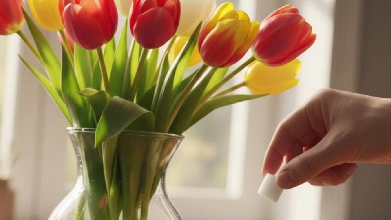 Bir miktar suyla şekeri karıştırıp vazoya dökün. Şeker, bitkilere yiyecek olarak hizmet ettiği için çiçekleri güçlendirir. Böylece laleleriniz iki kat daha uzun yaşar.