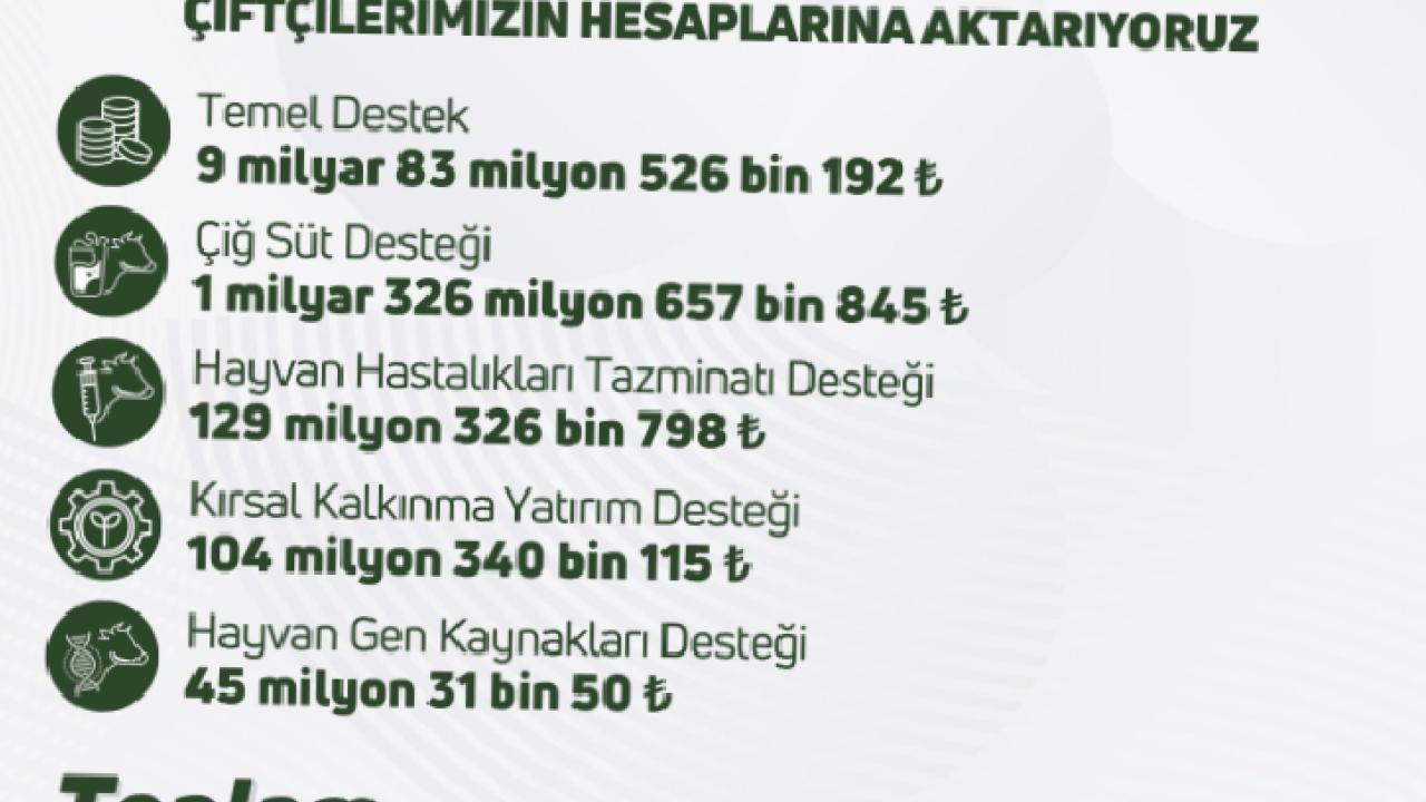 Bakan Yumaklı, “10 milyar 688 milyon TL tarımsal destek ödemesini çiftçilerimizin hesaplarına aktarıyoruz. Hayırlı ve bereketli olsun” ifadelerini kullandı.