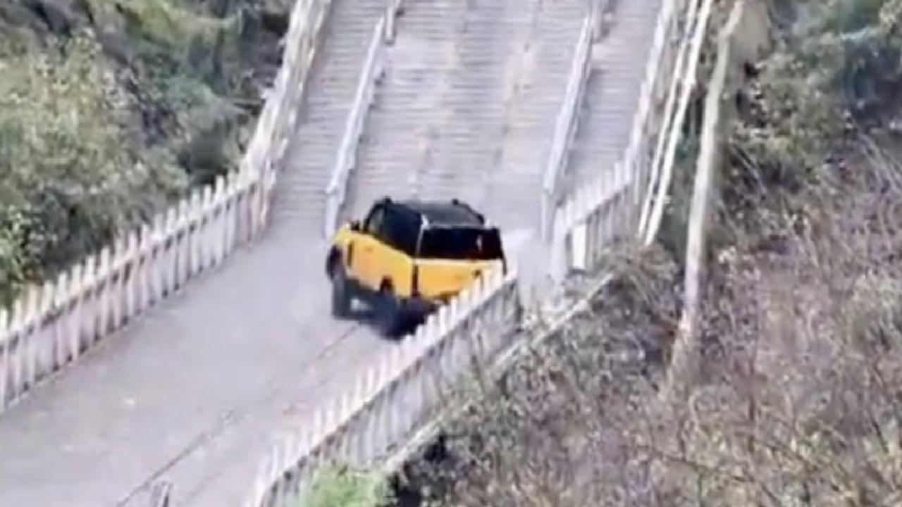 Çinli otomobil üreticisi Chery, tanıtım amacıyla ülkenin Hunan eyaletindeki Tianmen Dağı'nın 999 merdivenini tırmanmayı denedi.