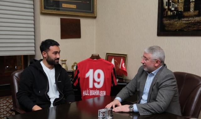 1. Lig'de Play-off mücadelesi vermek isteyen Ahlatcı Çorum FK kaptanı Ferhat Yazgan, Belediye Başkanı Dr. Halil İbrahim Aşgın'ı makamında ziyaret etti.