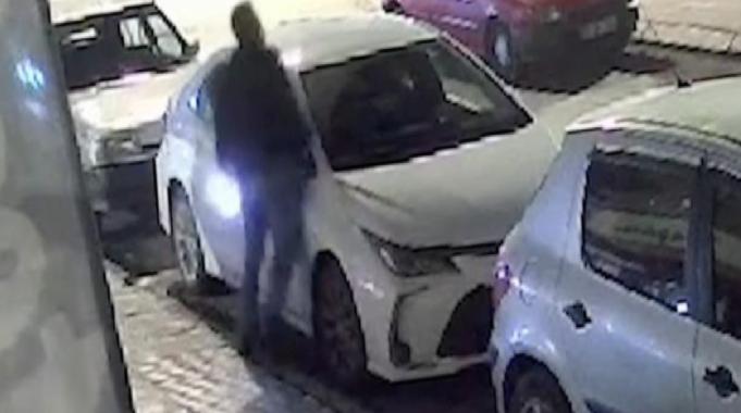 Öte yandan, şahsın araçlardan birinin aynasını kırma anı güvenlik kamerasına yansıdı. Görüntülerde, şahsın yanına geldiği otomobilin aynasını kırdığı görülüyor.
