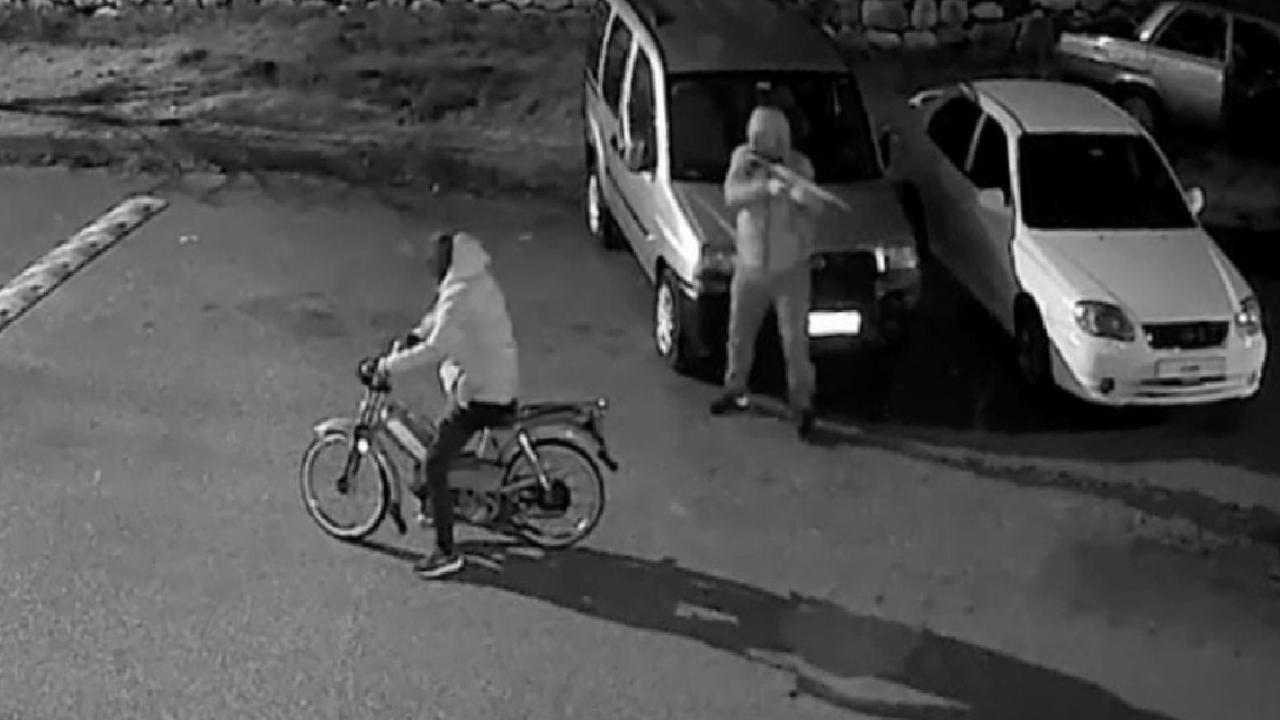 Şahısların biri motosiklette beklerken, diğeri inerek pompalı tüfekle ateş ediyor. Şahıslar daha sonra motosiklete binerek uzaklaşıyor.