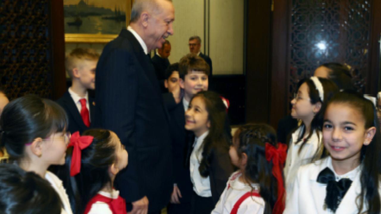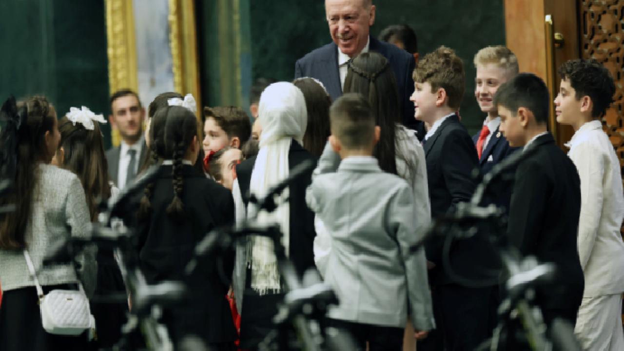 Çocukların 23 Nisan Ulusal Egemenlik ve Çocuk Bayramı’nı kutlayan Erdoğan, onları ağırlamaktan büyük memnuniyet duyduğunu ifade etti.