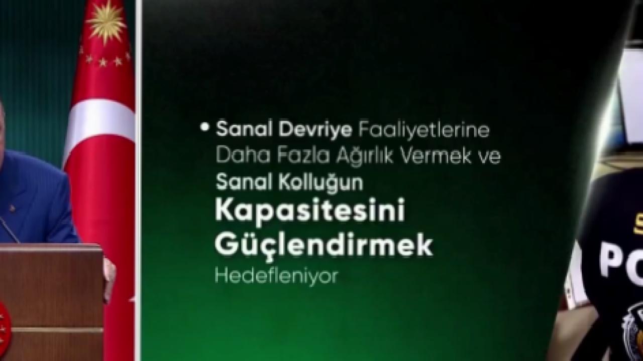 Bu noktada ‘siber devriye faaliyetlerine’ daha fazla ağırlık vermeyi, siber birimlerimizin kapasitesini güçlendirmeyi hedeflediklerini belirten Cumhurbaşkanı Erdoğan, "İnternetin karanlık dehlizlerinde görünür-görünmez varlığımızı yapay zekâdan da istifade ederek daha da güçlendireceğiz. Okul-kolluk iş birliğinin artırılması, yeni çalışma modellerinin geliştirilmesi, yine bu süreçte atacağımız adımlardan biri olacaktır." dedi.