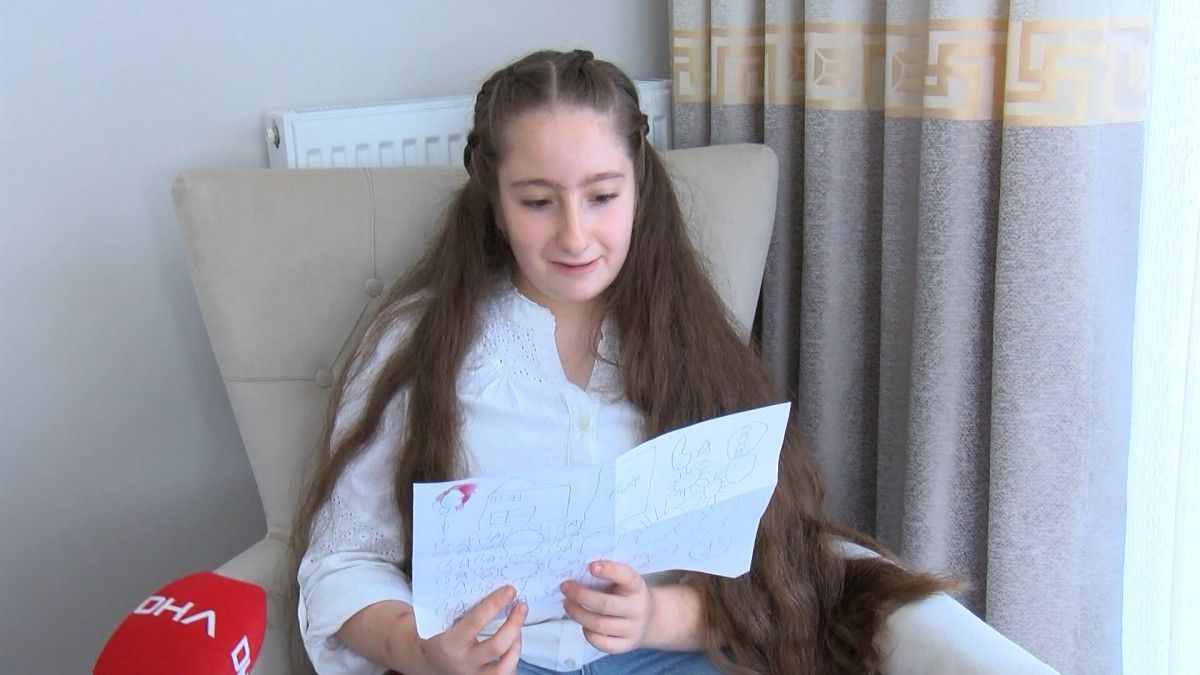 Ailenin en küçük üyesi olan ve 'Prader Willi Sendromu'na sahip 10. sınıf öğrencisi 15 yaşındaki Ecemsu, Cumhurbaşkanı Erdoğan'a yazdığı bir şiiri verdi.