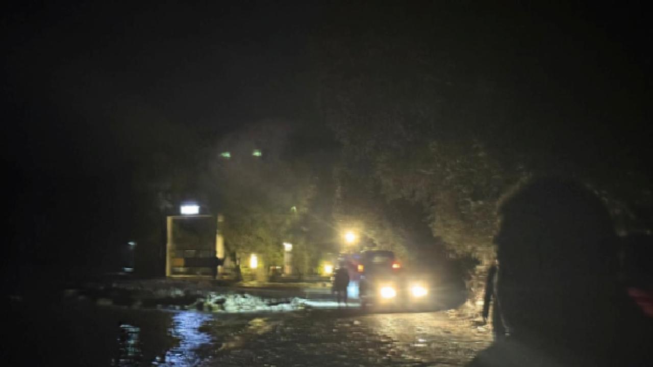 Muğla'nın Datça ilçesinde sele kapılan araçtaki sürücü, dere yatağında bir ağacın dalına tutunarak hayatta kaldı.