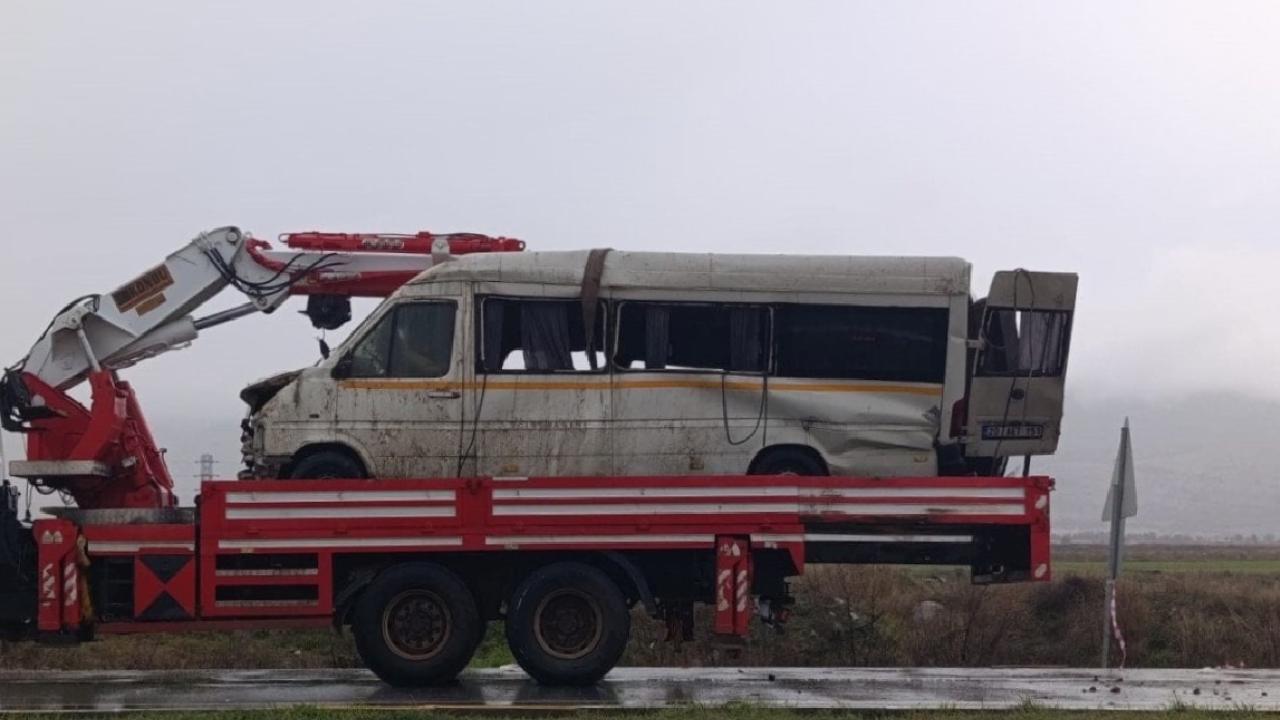 Denizli’nin Çivril ilçesi Denizli-Uşak karayolunda, sürücü R.E. yönetimindeki 20 AET 151 plakalı transit araç, yağış sonrası kayganlaşan yolda kontrolden çıkarak taklalar attı.