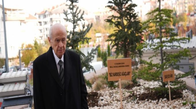 Bu kapsamda da MHP Genel Başkanı Devlet Bahçeli'nin "Biz Kardeşiz Ağaçları" genel merkezin önündeki yerini aldı.