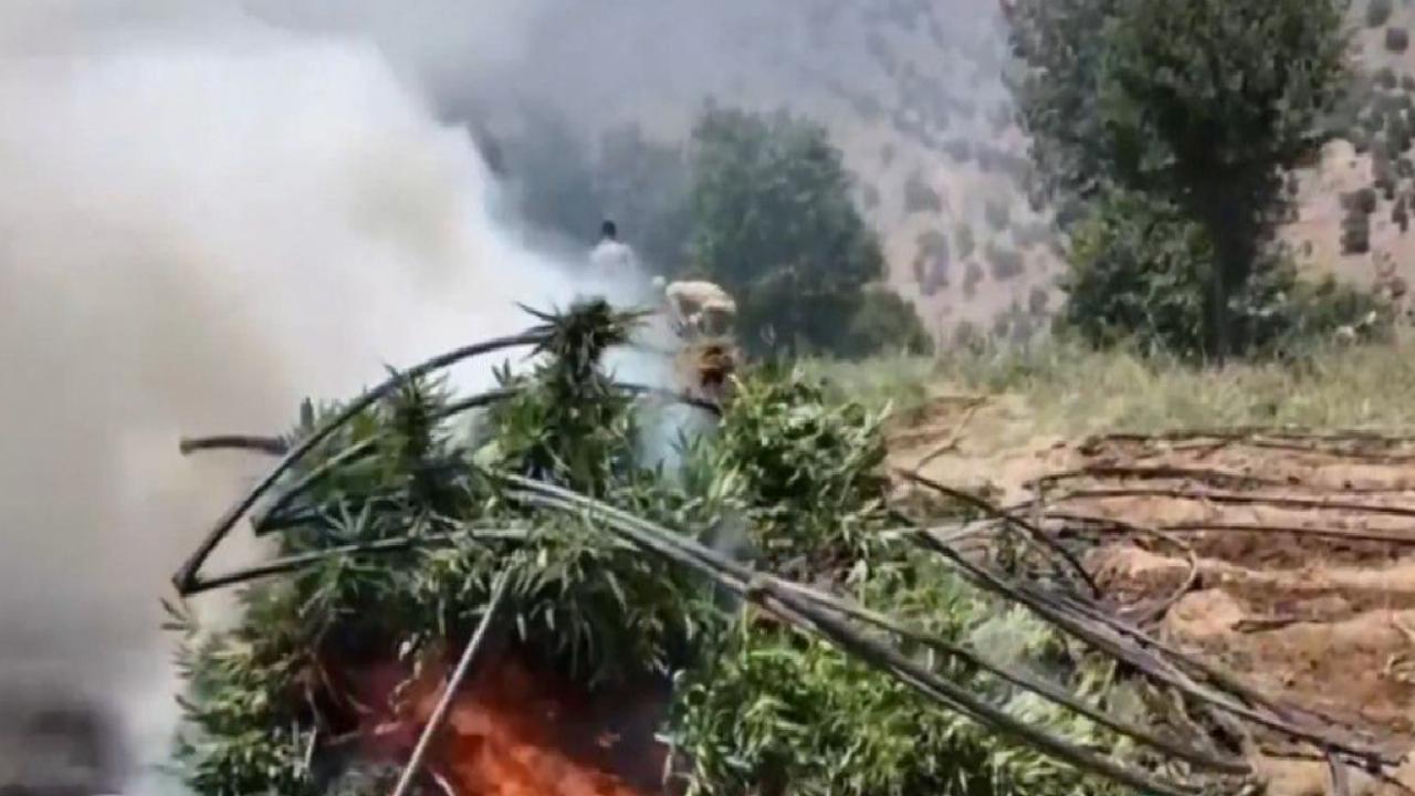 Jandarma tarafından Diyarbakır’da 100 tondan fazla toz esrar elde edilebilecek 4 milyon 459 bin adet kök kenevir ve skunk ile 150 kilogram esrar ele geçirildi.
