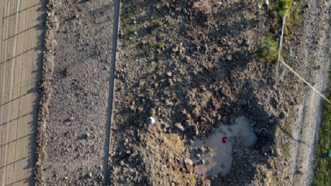 Uçağın düştüğü ve trafiğe kapatılan yol sabahın ilk ışıkları ile görüntülendi. Görüntülerde uçağın düştüğü asfalt yolda çukur oluştuğu görüldü.