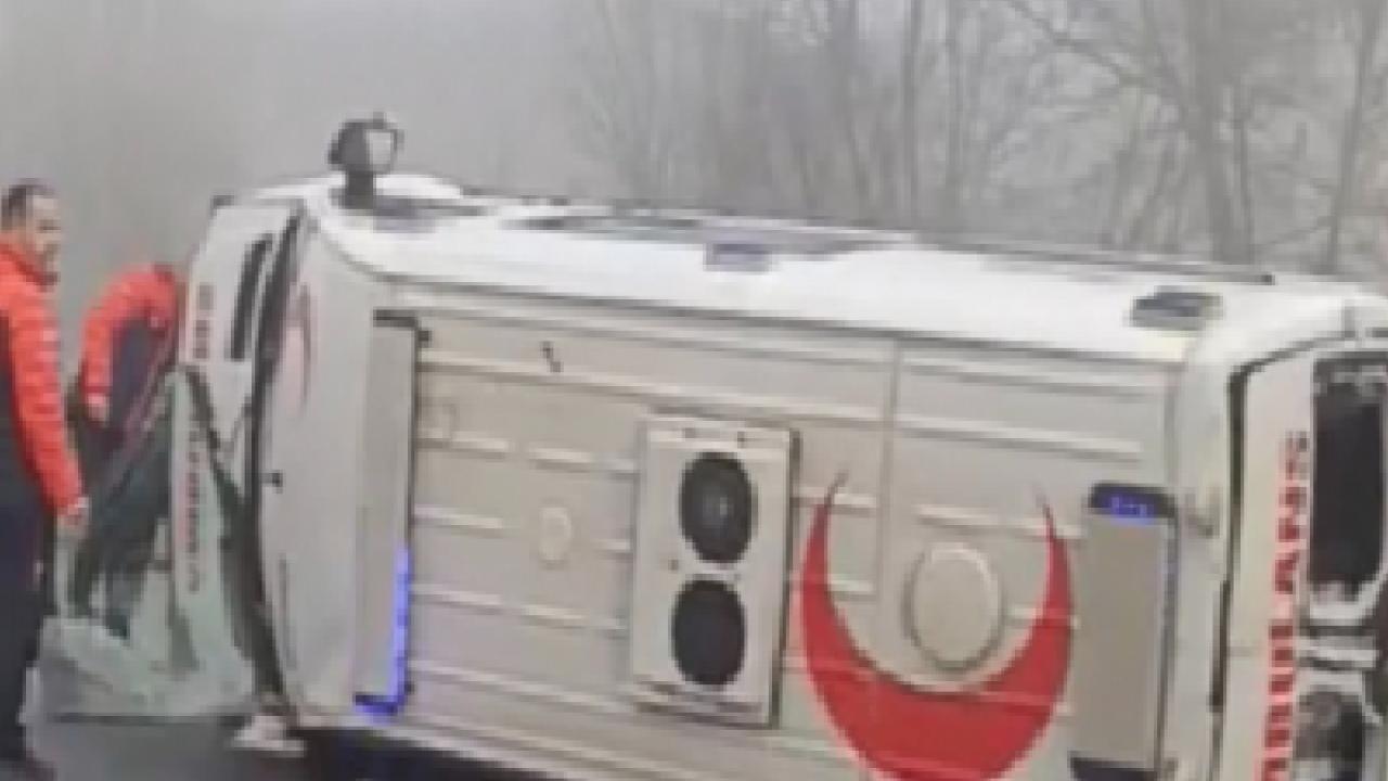 Sefer DEMİR / DÜZCE () - Ankara’ya hasta naklini tamamladıktan sonra Zonguldak’ın Ereğli ilçesine gitmekte olan ambulans, Kuzey Bağlantı Yolu AFAD Kavşağı’nda yoğun sis ve yolun kaygan olması nedeniyle sürücüsünün kontrolünden çıktı.