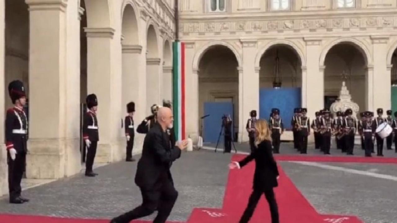 Meloni, Rama'yı, Başbakanlık Sarayı Chigi'nin avlusunda resmi törenle karşıladı.