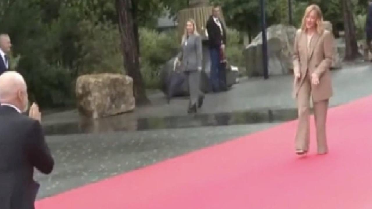 Karşılama töreninden önce Rama'nın, daha önce de yaptığı gibi Meloni'yi diz çökerek selamlaması dikkati çekti.