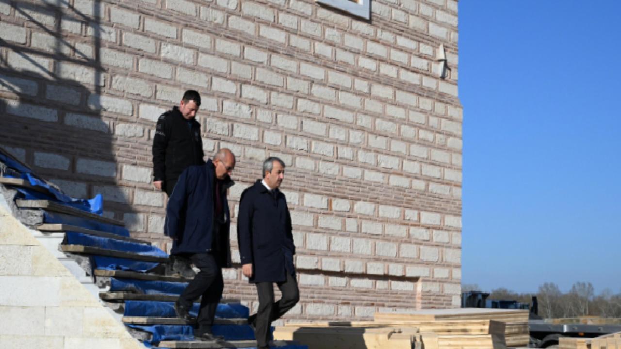 Edirne Valisi Yunus Sezer, restorasyon çalışmalarının sürdüğü alanda incelemelerde bulunarak yetkililerden bilgi aldı.