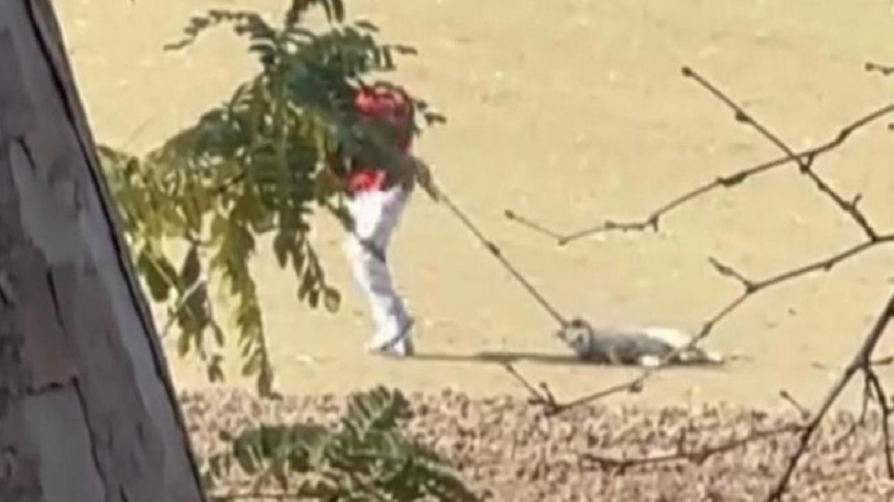 Sosyal medyada paylaşılan videoda belediye görevlisinin uyuşturucu iğneyle bayıltılan köpeği boynuna bağladığı iple yerde sürükleyerek toplama aracına götürdüğü anlar büyük tepki topladı.