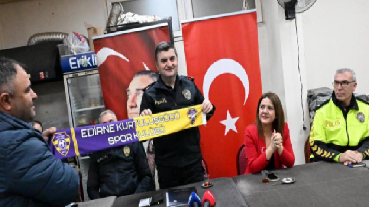 Huzur toplantısında Müdür Ayhan'a, Edirne KurtuluşGücü Spor Kulübü atkısı da hediye edildi.
