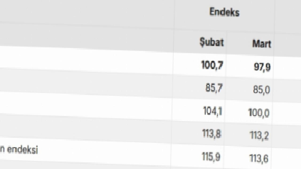 Ekonomik güven endeksi Şubat ayında 100,7 iken, Mart ayında yüzde 2,8 oranında azalarak 97,9 değerini aldı.