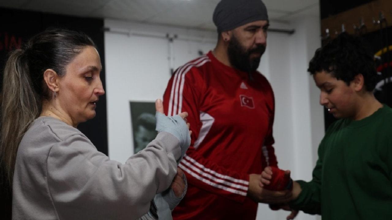 Kickboks dünya ve Avrupa şampiyonu antrenör Hamza Kendircioğlu yönetiminde sürdürülen çalışmalarda anne ve oğulları, teknik ve kondisyon idmanlarını birlikte yaparak zaman zaman rakip, zaman zaman ise partner oldu.