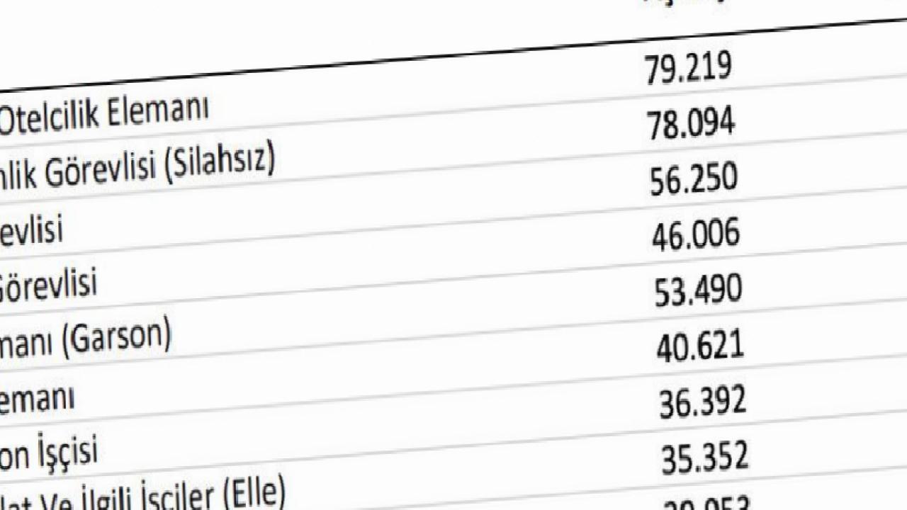 Meslekler bazında ise turizm ve otelcilik elemanı ilk sırada yer aldı.