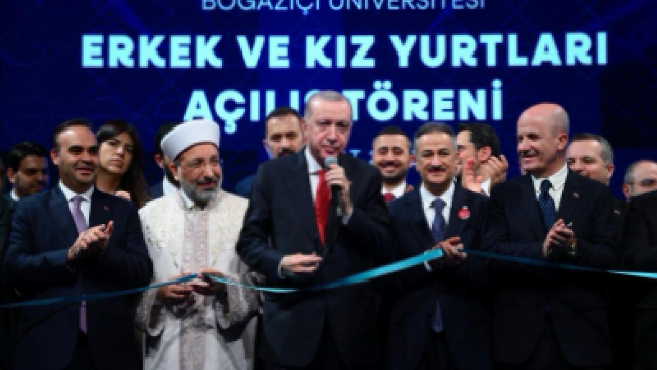 İSTANBUL () - Cumhurbaşkanı Recep Tayyip Erdoğan, Boğaziçi Üniversitesi’nde yapımı tamamlanan erkek ve kız yurtlarının açılışında konuştu.