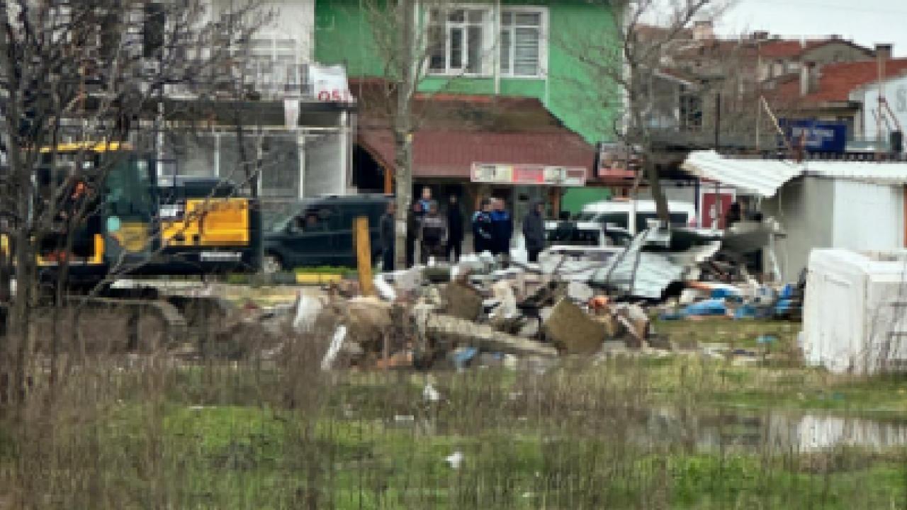 Erdoğan DEMİR / EDİRNE () - Erikli sahilinin merkezi noktalarından Kerami Mercan Sağlık Ocağı karşısında başlayan çalışmalar kapsamında, esnafa ait bazı yapılar iş makineleriyle tahliye edilip yıkılıyor. Çevrede mülk sahipleri ve güvenlik güçlerinin de hazır bulunduğu gözlendi.