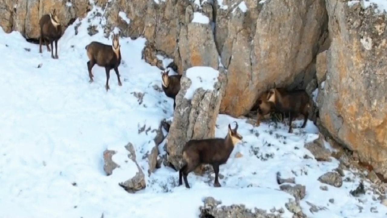 Karlı zirvelerle bütünleşen şamualar, hem doğaseverlerin hem de fotoğraf tutkunlarının ilgisini çekti. Drone ile kaydedilen görüntülerde, şamuaların dik yamaçlarda çevik hareketlerle ilerlediği ve karla kaplı kayalıklar arasında besin aradığı anlar net bir şekilde yer aldı.