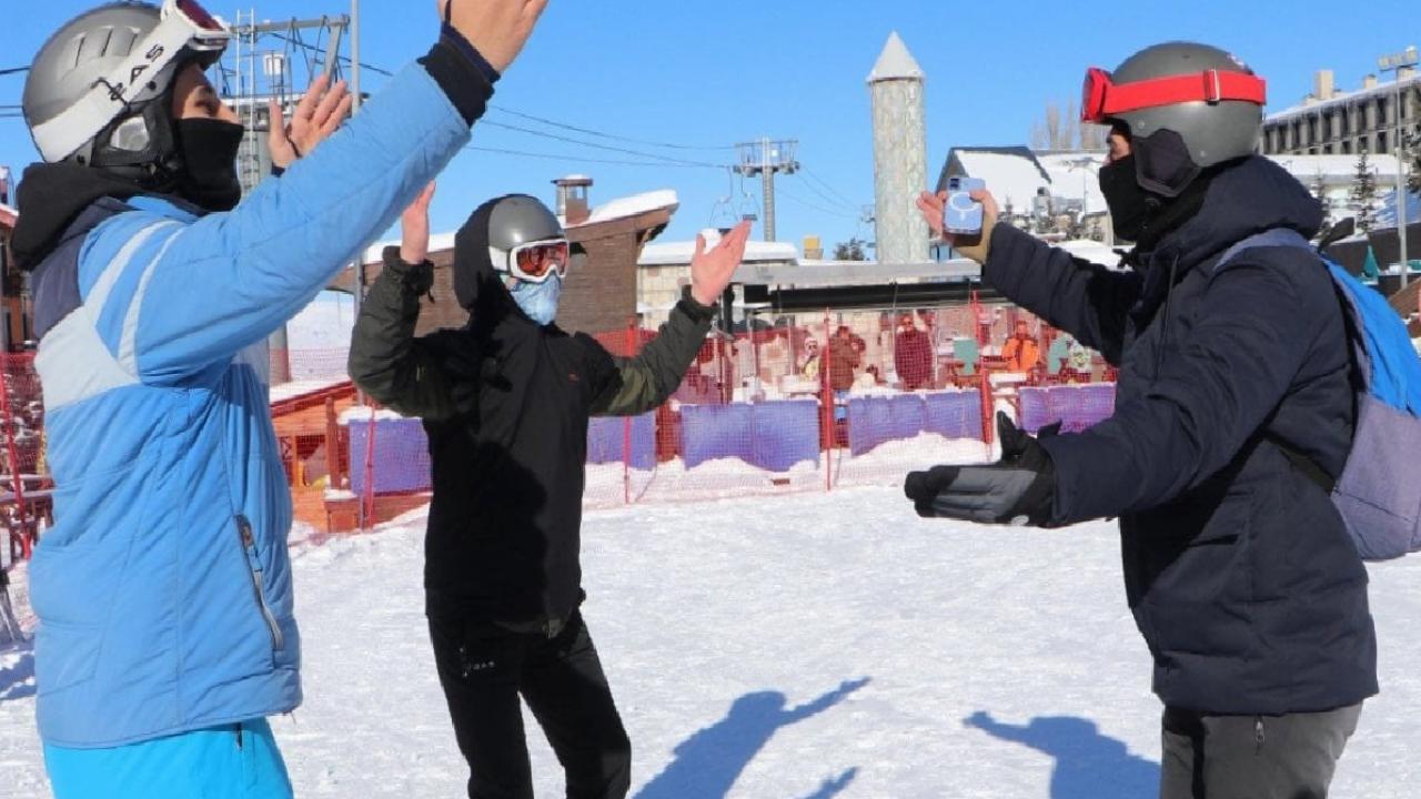 Öğleye doğru Palandöken'e çıkan misafirlerden bazıları kızak pistini tercih ederken, bazıları ise kendileri için uygun olan pistlerde kayak keyfi yaşadı.