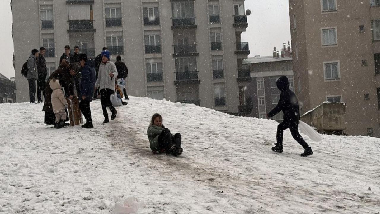 Bazı çocuklar tahta kızaklarıyla hız yaparken, bazıları da poşetleri kızak niyetine kullanarak karın tadını çıkardı. Soğuk havaya rağmen yüzlerinden eksik olmayan neşe, mahallenin dört bir yanına yayıldı.