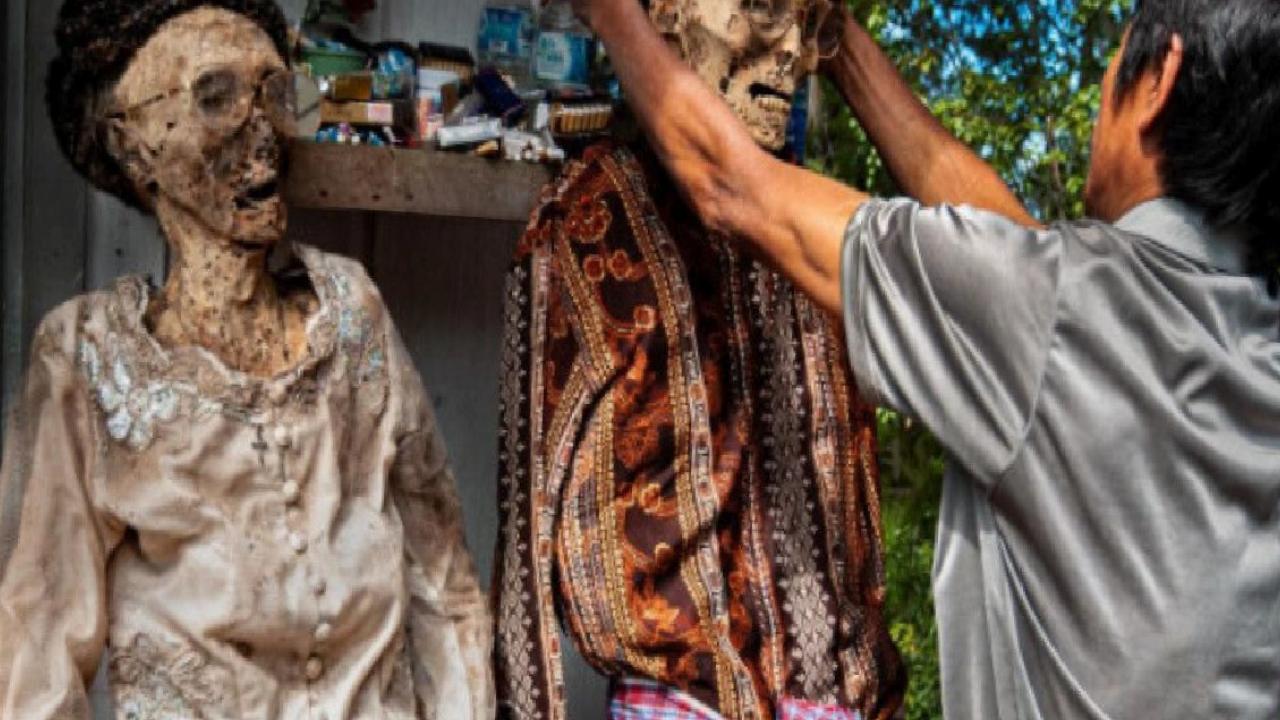 Endonezya'nın Sulawesi adasında yaşayan Toraja halkı, ölülerini yıllar sonra mezarlarından çıkarıyor, temizliyor ve yeni giysiler giydiriyor.