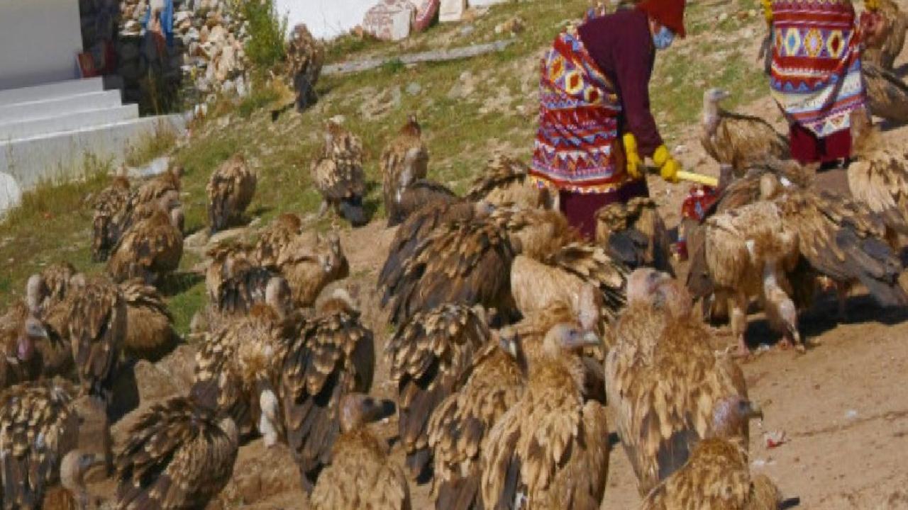 Tibet ve Moğolistan’da, ölü bedenler yüksek dağlara bırakılıyor ve yırtıcı kuşlar tarafından doğaya geri dönüşü sağlanıyor.