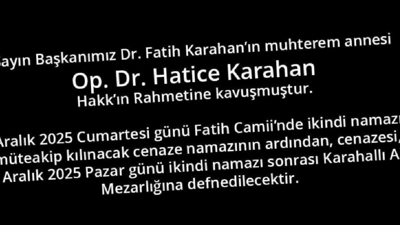 Karahan, annesi Opr. Dr. Hatice Karahan yaşamını yitirdi.