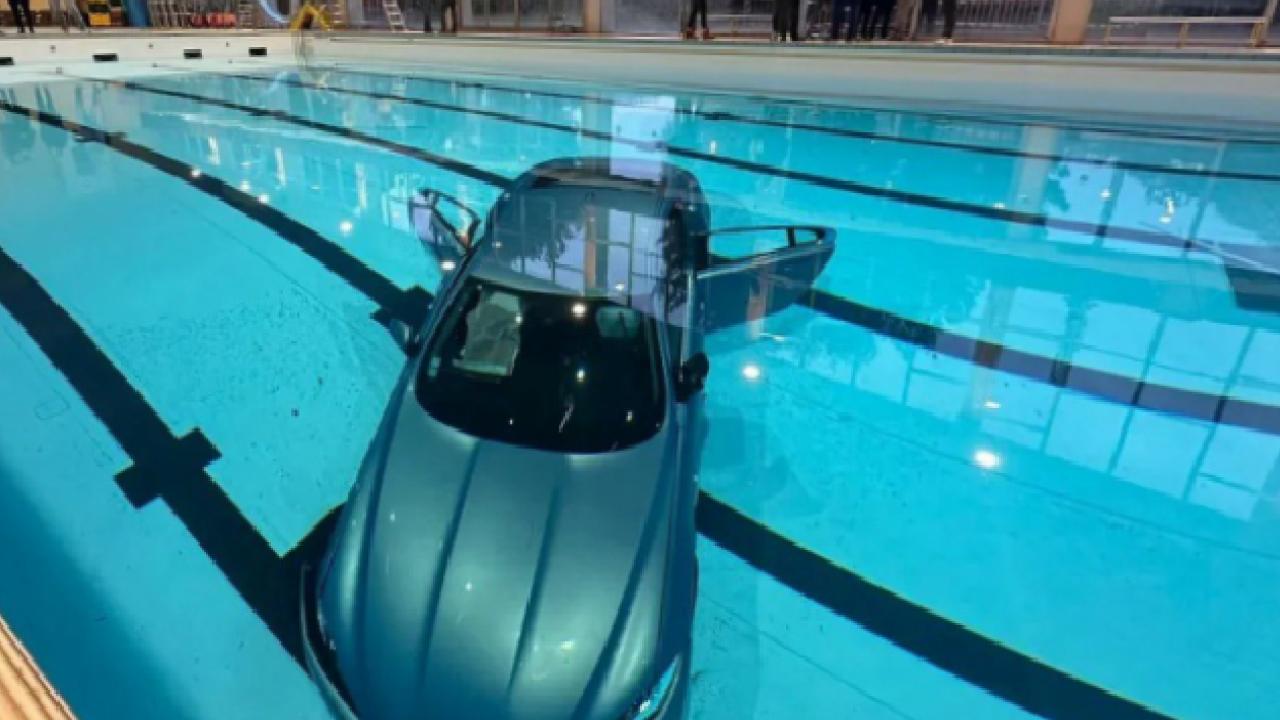 Olayın ardından iki güvenlik görevlisi hızla müdahale ederek anne ve çocuğu araçtan çıkardı. Edinilen bilgilere göre, kazada havuzda bulunan yüzücüler de dahil olmak üzere kimse yaralanmadı.