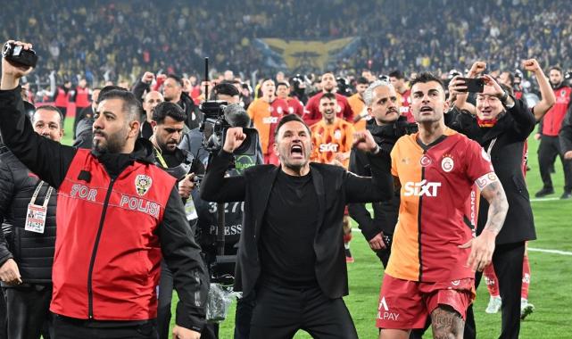 Futbolcular ve teknik ekip daha sonra deplasman tribününe giderek derbi galibiyetini marşlar söyleyerek birlikte kutladı.