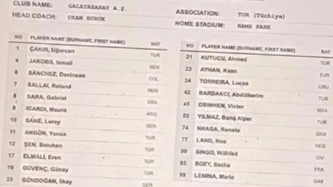 Öte yandan, yeni transferlerden Yaser Asprilla ve Can Armando Güner, UEFA'ya verilen yeni listede yer almadı.