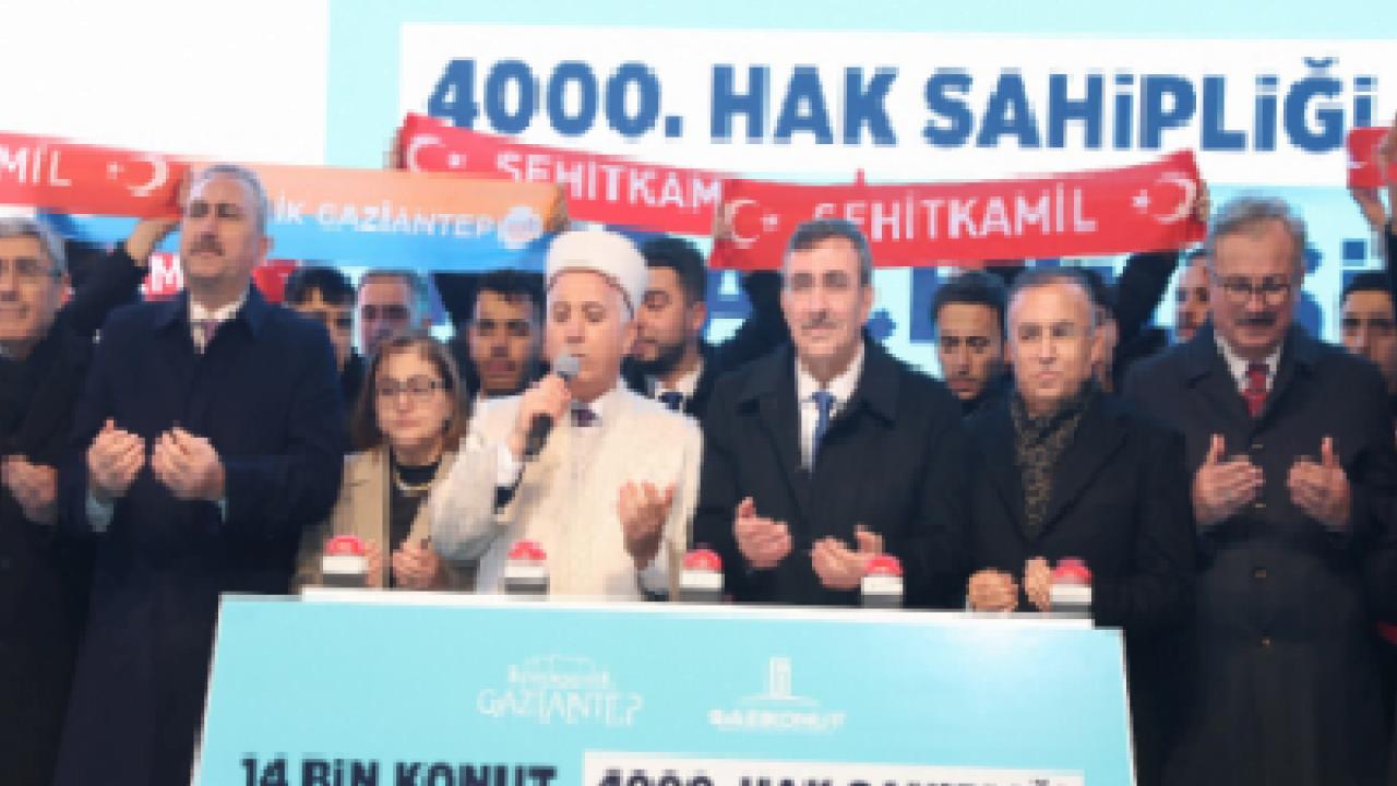 Cumhurbaşkanı Yardımcısı Cevdet Yılmaz, kura töreninde deprem şehitlerini rahmetle anarak yaraların sarılması için büyük gayret gösterdiklerini söyledi. Deprem sonrası kamu bütçesinden 90 milyar TL harcama yapıldığını belirten Yılmaz, “455 bin konutu teslim ettik. Gaziantep’te 25 bin 237 konut, 4 bin 463 köy evi, 1.353 iş yeri hak sahiplerine verildi. Gaziantep en hızlı toparlanan ilimiz oldu. Bu tesadüf değil, Gaziantep Modeli sayesinde” dedi.